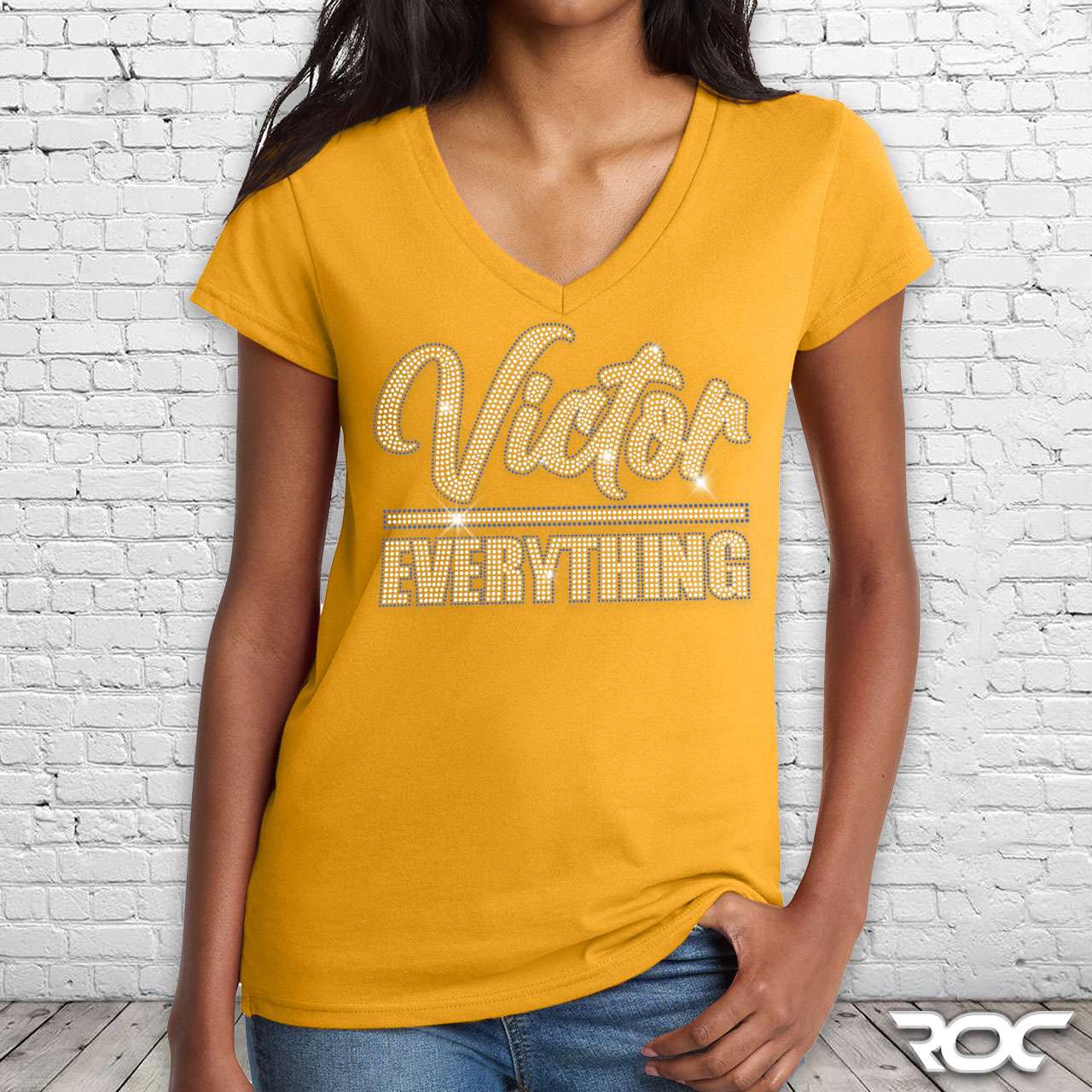 / Victor Over Everything Bling V-Neck – Yellow
